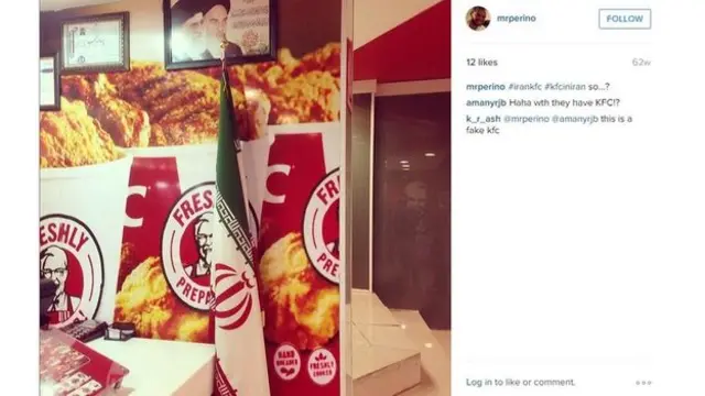 سنہ 2012 میں ایران میں یہ خبر عام ہو گئی کہ یہاں ’کے ایف سی‘ کھل گیا ہے، لیکن ہمارے بی بی سی کے ساتھی نے ہمیں بتایا کہ یہ خبر غلط تھی اور مذکورہ ریستوران نے یہ نام رکھنے سے پہلے ادارے سے اجازت نہیں لی تھی۔
