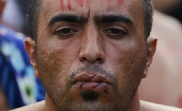 یونان اور مقدونیا کی سرحد پر پھنسے غیر قانونی تارکین وطن نے سرحد پار کرنے کی اجازت نہ ملنے پر احتجاجاً اپنے ہونٹ سی لیے ہیں۔