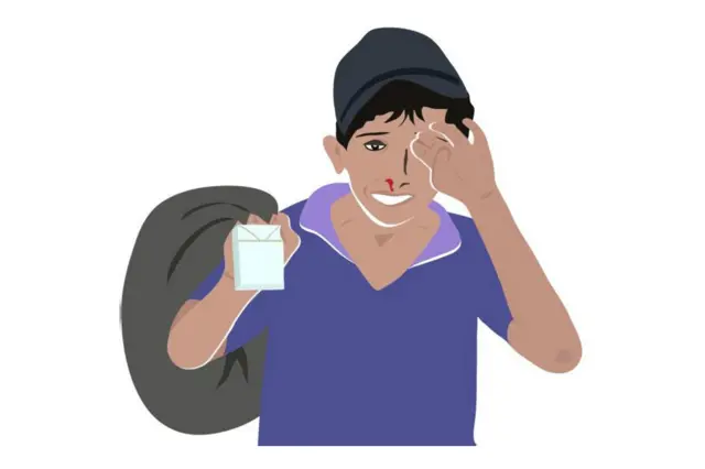 4۔ ٹشو بیچنے والے بچے پر تشدد کی تصویر