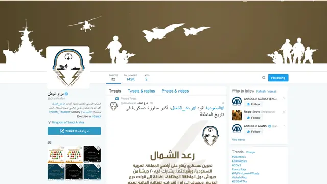 دوسری جانب سماجی رابطے کی ویب سائٹ ٹویٹر پر ان مشقوں کا ٹویٹر اکاؤنٹ بن گیا ہے۔ یہ اکاؤنٹ @diraalwatan کے نام سے ہے جب کہ North_Thunder کے نام سے ہیش ٹیگ بھی ہے۔