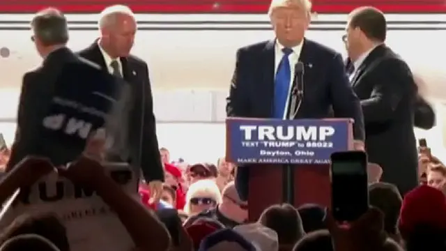 اوہائیو میں تقریر کے دوران سیکرٹ سروس کے اہلکاروں نے اچانک ڈونلڈ ٹرمپ کو اس وقت گھیرے میں لے لیا جب ایک شخص نے جنگلہ پھلانگ کر سٹیج کی طرف بھاگنے کی کوشش کی۔