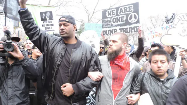 دوسری جانب ٹرمپ کے اپنے شہر نیویارک میں سینکڑوں لوگوں نے مین ہیٹن میں ٹرمپ ٹاور کے باہر مظاہرہ کیا۔ بعض مظاہرین نے ان کے خلاف نعرے لگائے جن میں ان پر نسل پرستی، صنفی تعصب اور ہم جنس پرستوں کا مخالف ہونے کا الزام عائد کیا۔