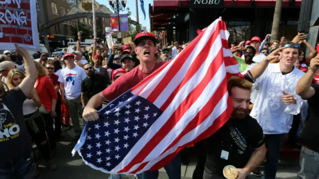 کیلیفورنیا میں ٹرمپ کے حامیوں اور مخالفین کے درمیان تصادم