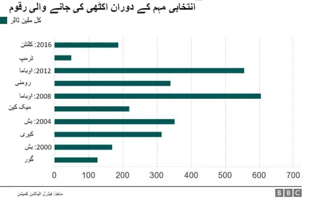 اگر ڈونلڈ ٹرمپ صدر بن جاتے ہیں تو وہ ایک ایسے صدر ہوں گے جنھوں نے انتخابی مہم میں سب سے کم رقم خرچ کی ہے۔ فیڈرل الیکشن کمیشن کے ریکارڈز کے مطابق انھوں نے اپریل تک اپنی مہم پر چار کروڑ 90 لاکھ ڈالر خرچے ہیں جن میں سے تین کروڑ 60 لاکھ ڈالر ان کی اپنی رقم تھی۔