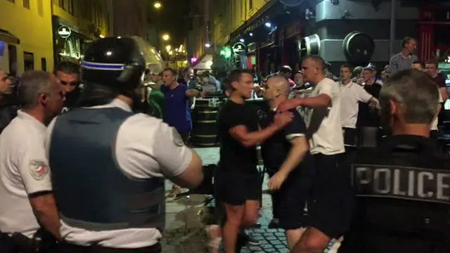ایک مقامی ویب سائٹ کے مطابق چار فرانسیسی پولیس اہلکار برطانوی شائقین جھگڑے میں زخمی ہو گئے۔ ہاتھاپائی ملوث ہونے والے تمام افراد نشے میں تھے۔