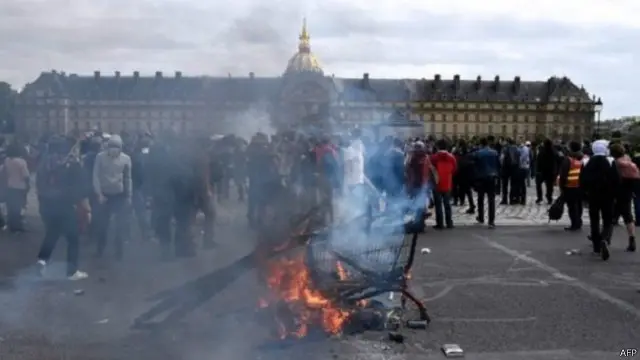 پولیس کا کہنا ہے کہ پیرس میں ہونے والی جھڑیوں میں ’چہرے پر نقاب پہنے کئی سو افراد‘ شامل ہیں۔ جنھوں نے کئی دوکانوں کے شیشے توڑے اور کوڑے دانوں کو آگ لگا دی۔