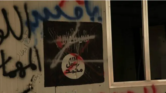 اسی عمارت میں ایک کمرا فلوجہ میں دولت اسلامیہ کی جانب سے بنائی گئی آدھی درجن جیلوں میں سے ایک ہے۔ یہ آگ لگنے سے بری طرح متاثر ہو چکا ہے۔