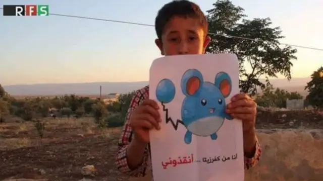 ریولیوشنری فورسز آف سیریا میڈیا آفس یعنی آر ایف ایس نے جو صدر بشار الاسد کے خلاف گروپوں کی حمایت کرتا ہے کئی فوٹو انٹرنیٹ پر ڈالی ہیں جن میں بچے اس گیم کے کردار پکاچو، سکوئرٹلز اور ویڈلز کے ہمراہ کھڑے ہیں۔