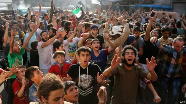 حلب سے آنے والی تازہ تصاویر میں باغیوں کے حامیوں کو خوشیاں مناتے ہوئے دیکھا جا سکتا ہے۔