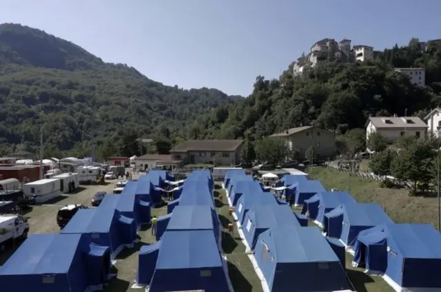 اماترس کے میئر سرگیو پیروزی کا کہنا ہے کہ جیسے ہی موسم سرد ہو گا متاثرین کو عارضی طور پر ساحل سمندر پر واقع ہوٹلوں میں کمرے دیے جائیں گے اور بعد میں انھیں ان خیموں میں منتقل کیا جائے گا۔
