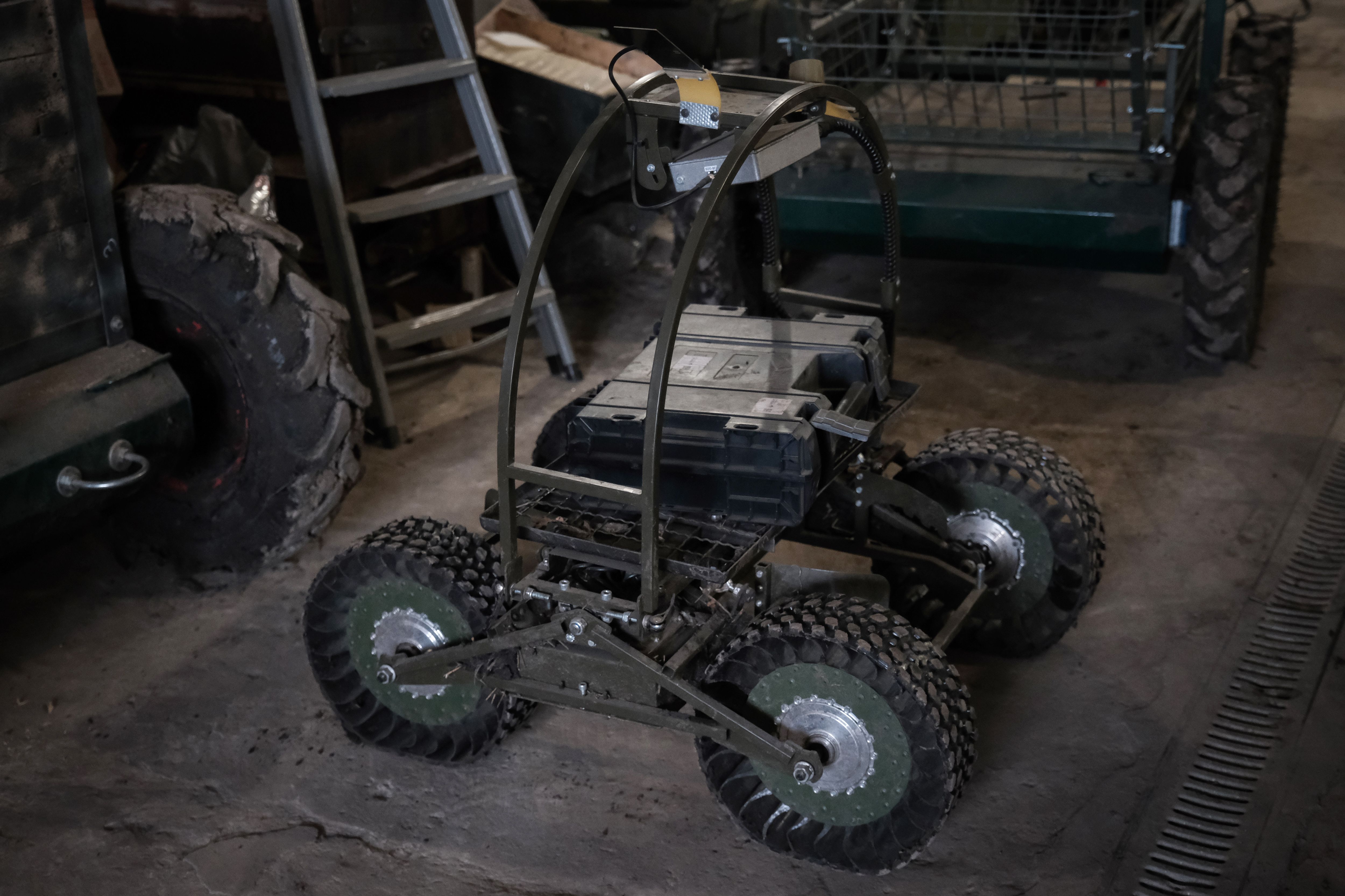 79-бригада устахонасида илгари фақат масофадан бошқариладиган учар дронларни ясаган муҳандислар ҳозир жабҳада қўллаш учун ер усти дрон транспорт воситаларини такомиллаштирмоқда.