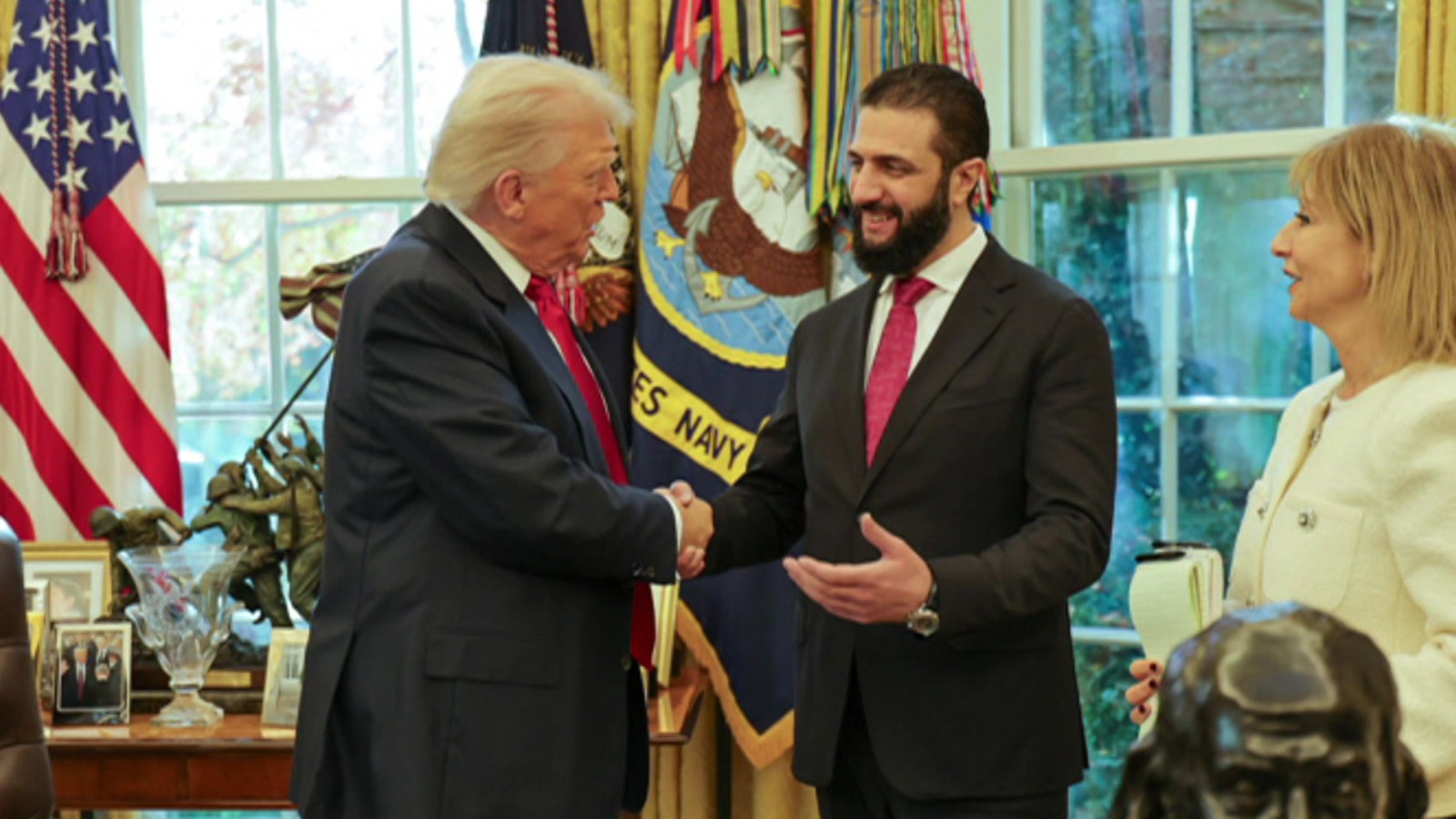 Яқин-яқингача Аҳмад Аш-Шараа АҚШ ҳукуматининг террорчи рўйхатида эди. ВВС таҳлилчиси Том Бейтмен Сурия янги раҳбари сафари муждаси ҳақида шундай дейди: