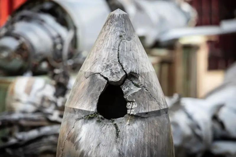 Украина кенг фойдаланадиган 155 миллиметрли М107 снарядида етти килограммдан сал камроқ портловчи модда бўлади, корпуси эса 36 килограмм пўлатдан иборат.