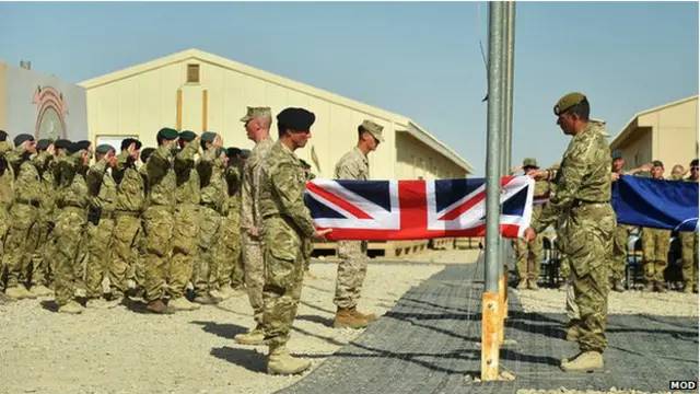"Ҳелманд устида Британия байроғи 2006 йилдан буён ҳилпираб турарди. Британия қўшинларининг аксари учун асосий ҳарбий база бўлган Бастионда оддий маросим бўлиб ўтди - унда Британия байроғи охирги марта туширилди. Бу сониялар рамзий - камида Британия учун - унинг Афғонистондаги уруши ниҳоясига етди".