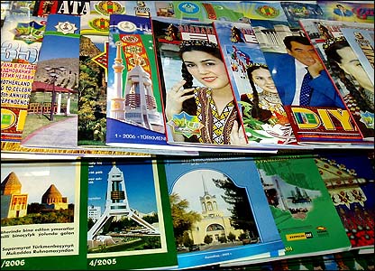 Туркманистоннинг турли нашриёт ва босмахоналари тақдим этган маҳсулотларда Сапармурод Ниёзовнинг катта портретларидан тортиб...