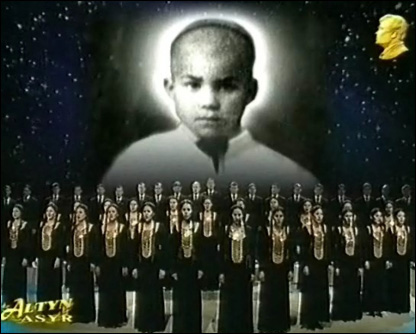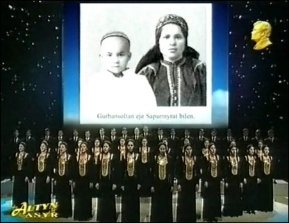 Туркманистоннинг "Олтин аср" телеканали марсиялар ижро этмоқда.