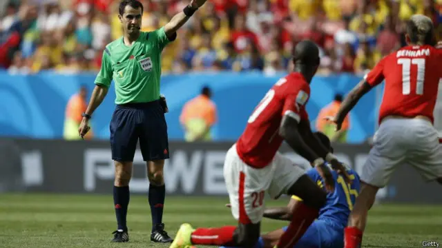 Унда "Россия-2" телеканали ходимларининг Равшан Эрматов ҳакамлик қилган Швейцария ва Эквадор ўртасидаги ўйинга берган баҳолари мисол тариқасида тилга олинади.