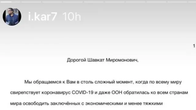 Гулнора Каримованинг фарзандлари Ислом ва Имон ўзларининг Instagram саҳифасида президент Шавкат Мирзиёев номига ёзилган мурожаатни эълон қилишган.