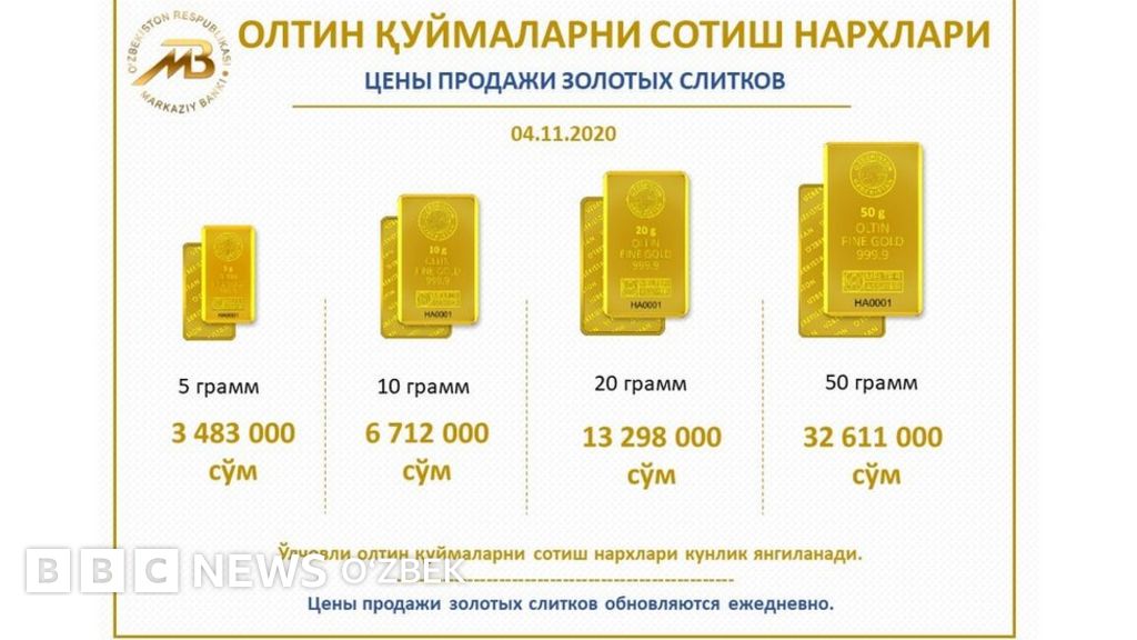 Ўзбекистонликлар энди олтин қуймаларини тижорат банкларидан сотиб олишлари мумкин, уларнинг нархи савдо куни олтиннинг жаҳон бозорида шаклланган нархида, Ўзбекистон миллий валютасида белгиланиши эслатилди.
