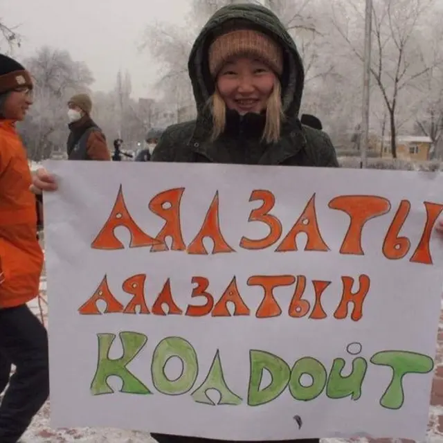 Фаоллар қўлларида "Зўравонликка кўз юмишни тўхтатинг!" ва "Зўравонликни йўқ қилишга ўз ҳиссангизни қўшинг", деган шиорлар ёзилган плакатлар билан пойтахт Бишкек кўчаларига чиқишган.