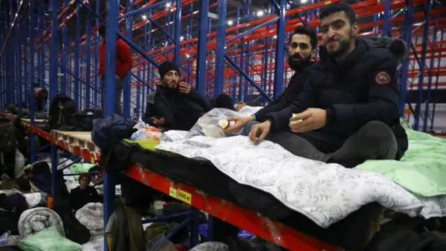 Европа Иттифоқига ўтиш илинжида ҳавонинг совиганига қарамасдан Польша-Белорусь чегарасига йиғилган муҳожирлар шу атрофдаги омборга кўчирилган.