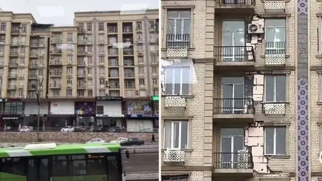 Вазирлик ўрганган видеода пойтахт Тошкентда янги қурилган кўп қаватли уйнинг фасад қисмида зилзиладан сўнг ёриқ пайдо бўлгани даъво қилинади.