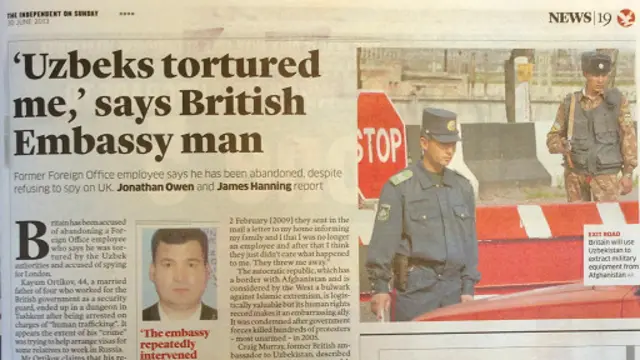 "Британия Ташқи ишлар вазирлиги ходимини ўз тақдирига ташлаб қўйганликда айбланмоқда. У Ўзбек расмийлари уни қийнаганларини ва Лондон учун жосуслик қилишда айблаганларини айтган", дейилади мақолада.