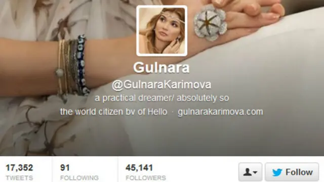 Гулнора Каримованинг Twitterда 45 мингдан ортиқ фолловери - муштарийси ёки унинг ёзувларини кузатиб борувчиси бор.