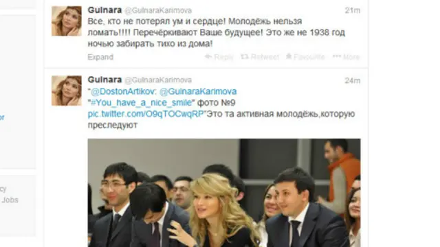 Бунинг ортидан Каримова хоним ўзини Ўзбекистондан қўллаб-қувватлашмаётгани ҳақида твит қилган.