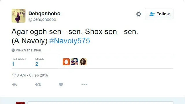 Ўзбекистонлик Твиттер фойдаланувчилари бу йил #Navoiy575 ва #Boburday ҳештегларини дунё бўйлаб оммалаштиришни истамоқдалар.