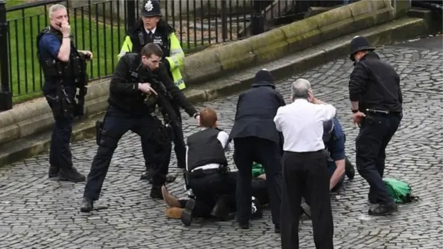 Шундан сўнг пичоқ кўтарган шахс Вестминстр саройи дарвозаси томонга югурган, унга уч марта ўқ узилган.