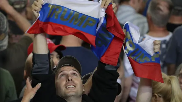Трамп "Американи қайтадан буюк қилиш учун курашимизни энди бошлаяпмиз", деган гапларни айтган вақти оломон ичидан кимдир Россия байроқларини ҳавога отган.