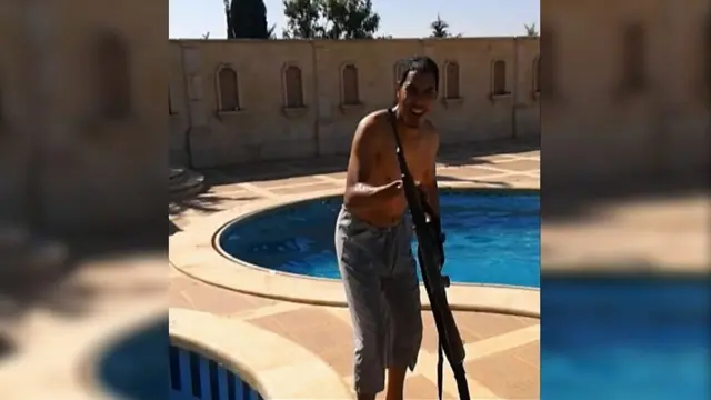 Тасвирни кўриб, бирор йигитнинг Магалуфдаги ҳордиқ они дейиш мумкин эди, аммо бу ерда Чукри бассейндаги кўнгилхушликни тўхтатиб, автомат билан суратга тушади.