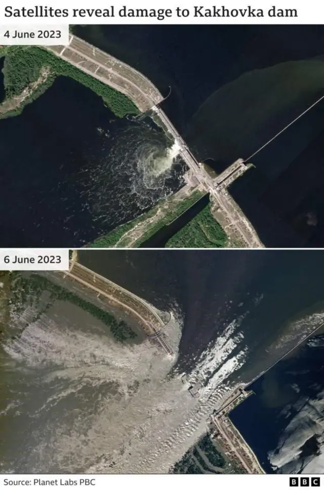 Тўғон портлатилгани ҳақидаги хабарлар 6 июнь тонгида тарқалди.