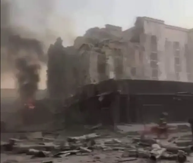 Видеони олаётган одам: "иккинчи зарба - "Дружба" меҳмонхонаси", - деб айтгани эшитилган.