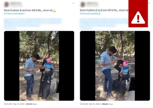 Ушбу видеога тиркалган ёзувда ҳиндий тилида бурқага яширинган жиноятчилар болаларни ўғирлашидан эҳтиёт бўлиш ҳақида огоҳлантирув бор.