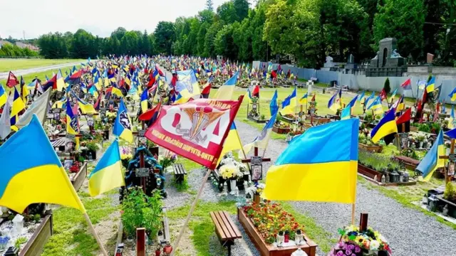 Украина байроқларининг сариқ ва кўк ранглари майин шабадада ҳар бир қабр устида хилпирайди - уларнинг юзлаб. Уларнинг ҳар бири ҳар куни шарқий ва жанубий жанг майдонларини қамраб олаётган, Украина шаҳар ва қишлоқлардаги қабристонларни тўлдираётган буюк йўқотишлар тўлқинининг белгисидир.