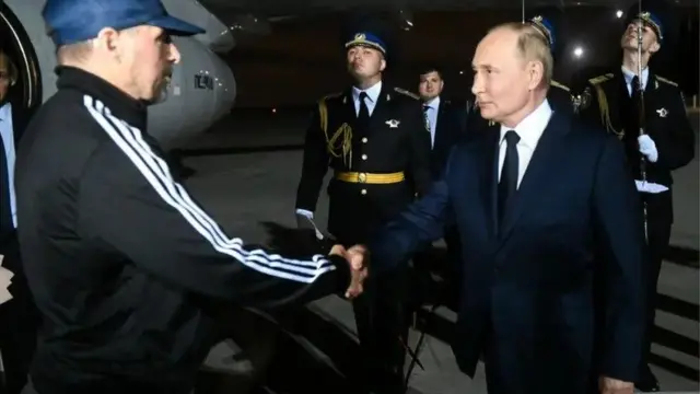 Россия махсус парвоз бўлинмасининг "Ту-204" русумидаги самолётидан тушиб келаётган маҳбусларни трапнинг ёнида туриб шахсан Россия президентининг ўзи қарши олган.