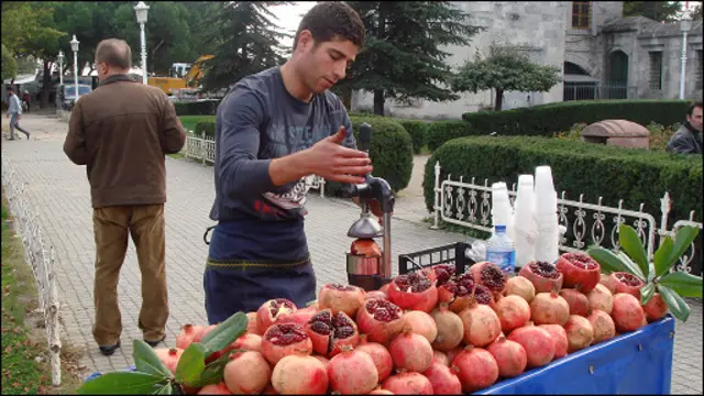 Сал нарида янги сиқилган анор шарбатини таклиф қилишмоқда. Татиб кўринг, анор сувининг энг зўри Истанбулда.