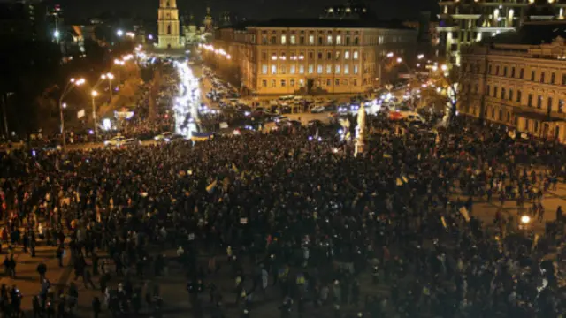 Укранинадан келаётган хабарларга кўра, минглаб одамлар пойтахт Киевдаги Мустақиллик майдонига кириб боришган.