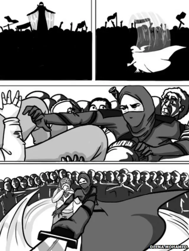 Дина ўз супер-қаҳрамони ёрдамида Ғарбдаги муслима аёлни ожиза деб қаровчиларга ҳам қарши чиқади.