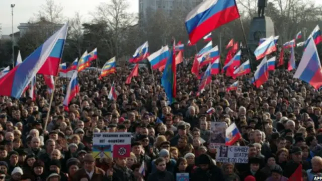 "Эрта тонгда автомат ва пулемёт билан қуролланган гуруҳ Симферополда Қрим Олий Радасини босиб олгани ҳақида Фейсбукдаги саҳифасида хабар берган Украина муваққат ички ишлар вазири Арсен Аваков шаҳар марказида қуролли тўқнашув содир бўлишига йўл қўймаслик чоралари кўрилганини, ички қуролли кучлар ва барча милиция таркиби кўтарилганини билдирган.