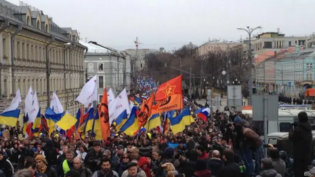Москва марказида Россиянинг Украина ҳудудида ҳарбий амалиётларни амалга оширишига қарши ўтказилаётган "Тинчлик юриши"га ўн минглаб одамлар йиғилган. Бу ҳақида Би-би-си рус хизматининг мухбири Юрий Маловерьян хабар қилмоқда.