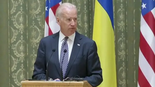 Украина муваққат бош вазири Арсений Яценюк билан музокаралардан сўнг гапирган Байденнинг нутқи кескин оҳанги билан ажралиб турди.