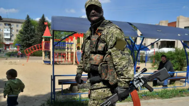 Славянскдаги Би-би-си мухбири Стив Розенберг шаҳар маркази сокин экани, ҳамда Россияпараст фаоллар ўрнатган қўлбола назорат нуқталари ва кўчаларда одамлар сайр қилиб юрганини айтади.