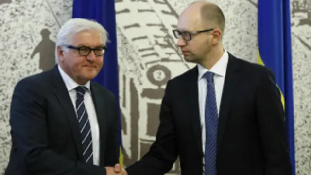 Киевда вақтинчалик бош вазир Арсений Яценюк билан музокаралардан сўнг чиқиш қилган Штайнмайер Киев ҳукуматининг россияпараст бўлгинчилар билан мулоқоти муҳимлигини таъкидлаган.