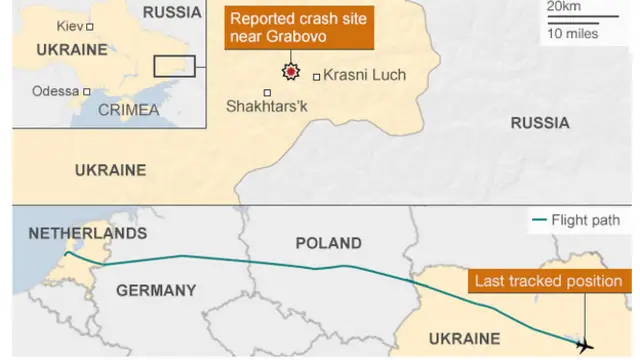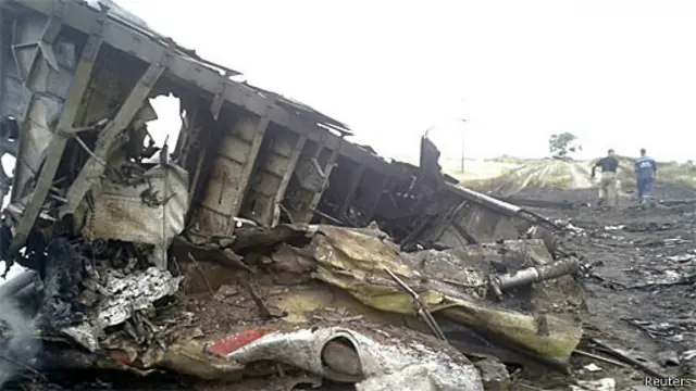 Учоқ қулаган Грабово қишлоғи яқинидаги жойга борган Reuters мухбири ёнаётган учоқ қолдиқларини, ўнлаб инсонлар жасадларини кўрган.