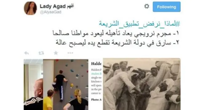 "Why we reject implementing Sharia" (“нега биз Шариатнинг жорий этилишига қаршимиз”) ҳэштегини ҳозир Швейцарияда истиқомат қилувчи асли мисрлик доктор Алия Гад бошлаб берган.