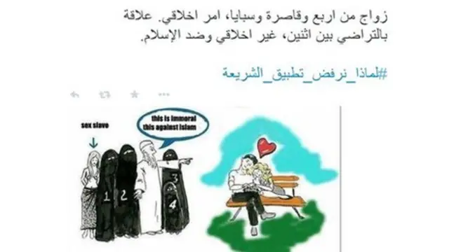 Бироқ "why we reject implementing Sharia" ҳэштеги “Твиттер”да бир кеча-кундузнинг ўзида 5.000 фойдаланувчи томонидан қўлланилибди.