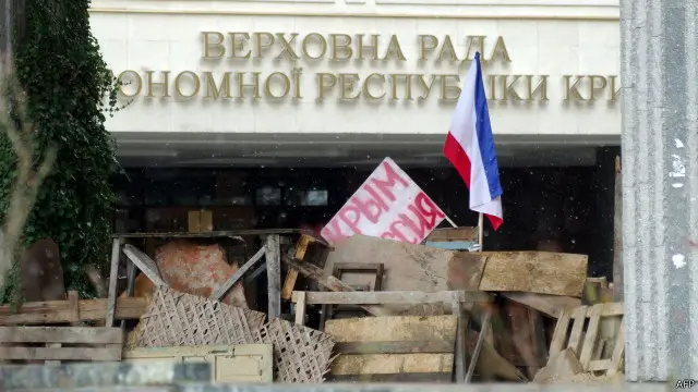 Референдумдан сал аввал белгисиз қуролли кишилар Қримни босиб олишганди. Жаноб Путин охирги интервьюсида бу аскарларни "Қримнинг мудофаа кучлари"ни дастаклаш сифатида йўллаганини тан олди.